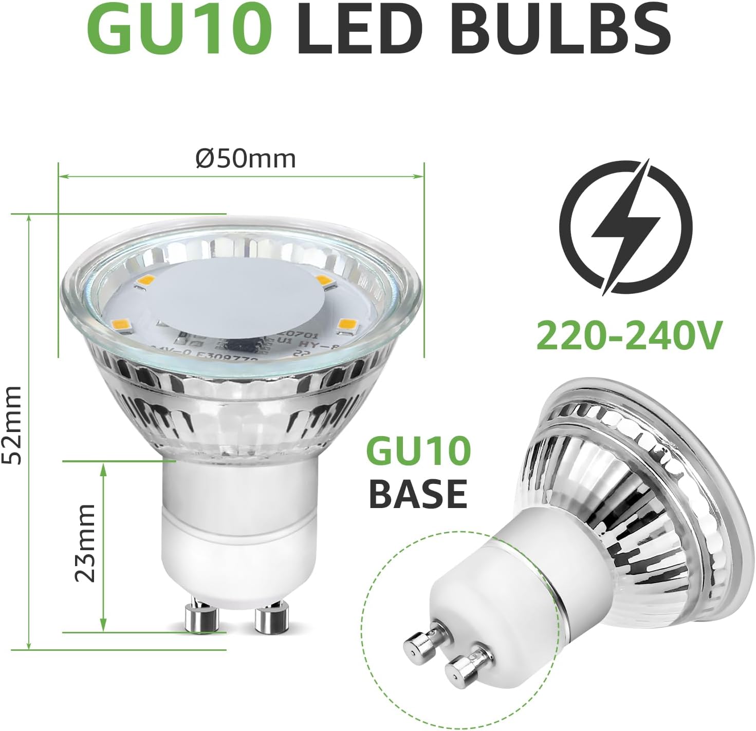 With the ordinary GU10 bi-pin base and similar shape design, these GU10 LED bulbs are ideal and long-lasting replacements for your mains voltage halogen lamps, they can be easily fitted to your existing light fixtures with GU10 holders.