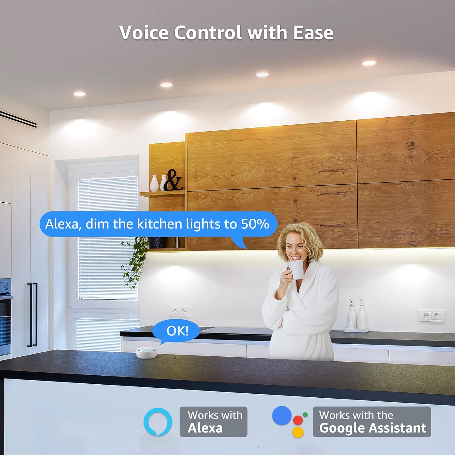 - Compatible with Alexa (Echo or Echo Dot) and Google Home.