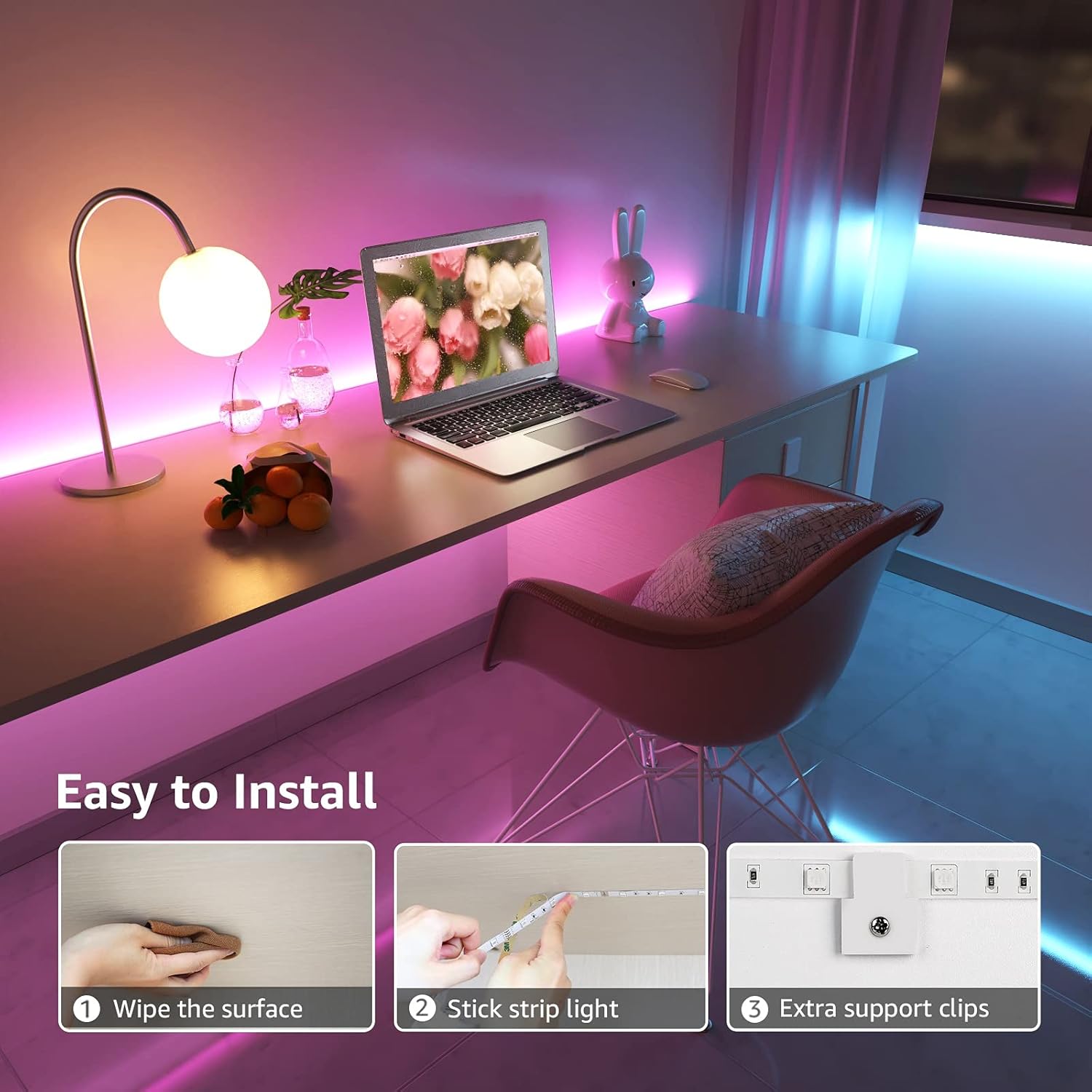 This stick-on and plug-in LED strip is easy to install and work straight out the box, this slim and flexible light strip is easy to hide and bend for corner, cuttable if it's too long.