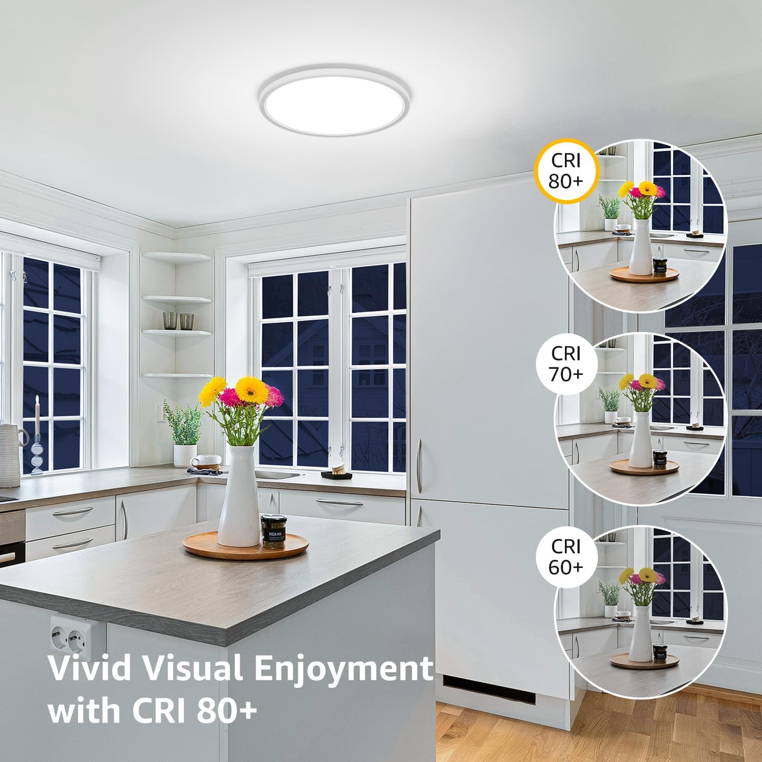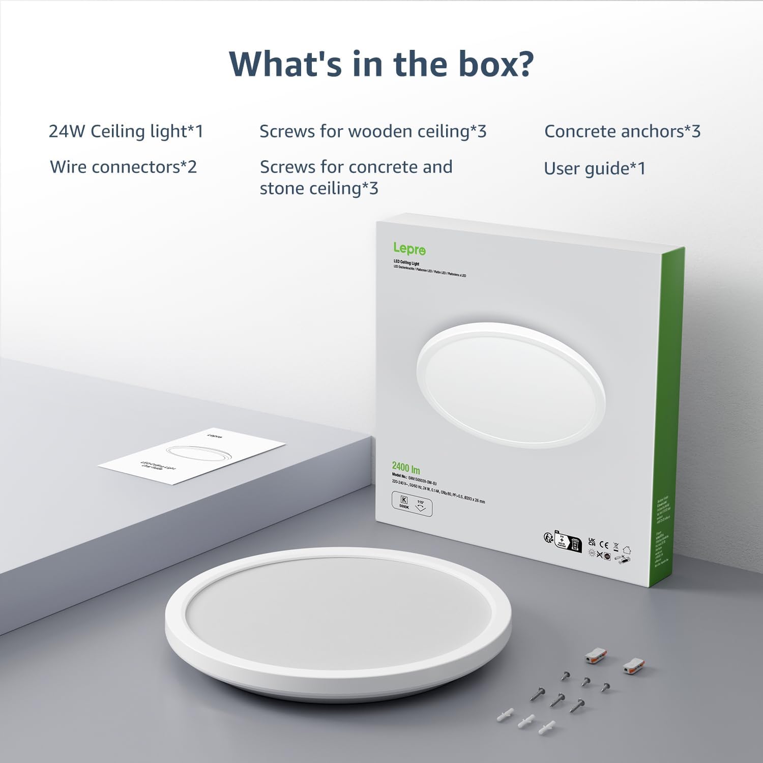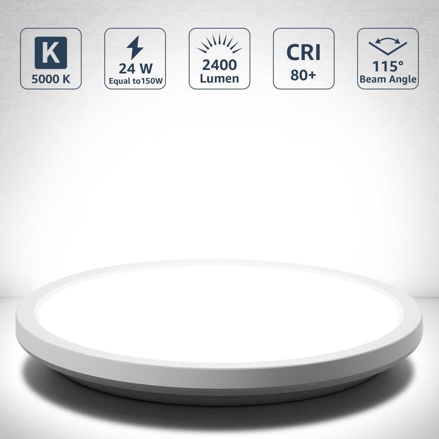 The 24W ceiling light is equivalent to two 75W incandescent bulbs, with brightness up to 2400lm, ideal for large places like living rooms, garages.