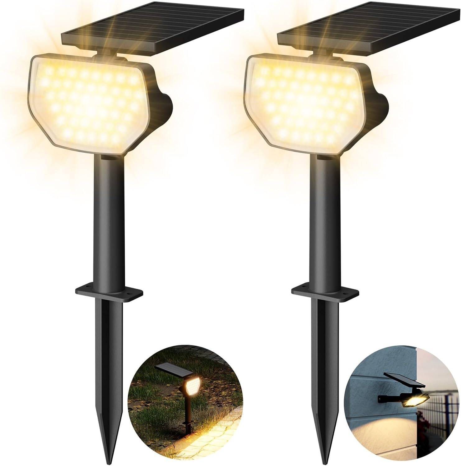Lepro Solar Spot Lights Outdoor Garden, 43 LED Solar Garden Lights with IP65 Waterproof, 2 Lighting Modes, 135° Adjustable, Dusk-to-Dawn Warm White Solar Spotlights for Lawn Yard [2 Pack]