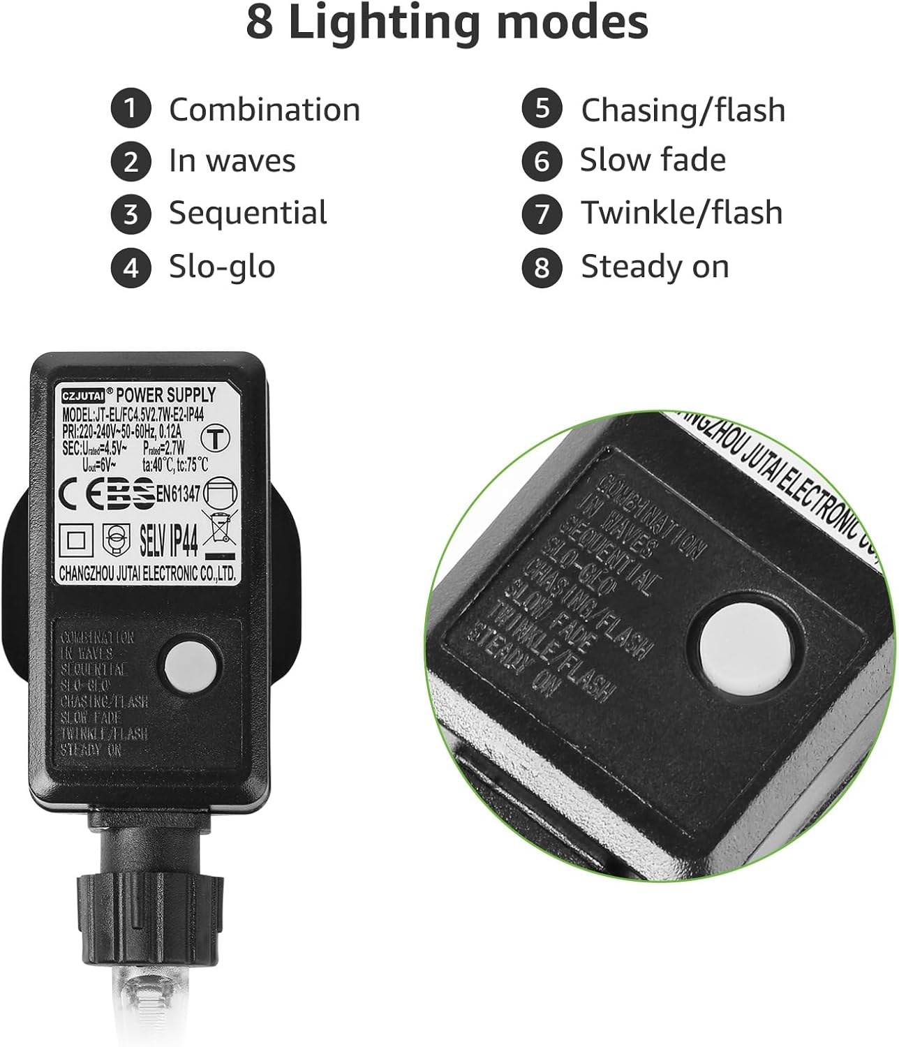 • 8 Lighting Modes - 7 Blinking modes and a stay-on mode are available. Press the button on the transformer to change mode.